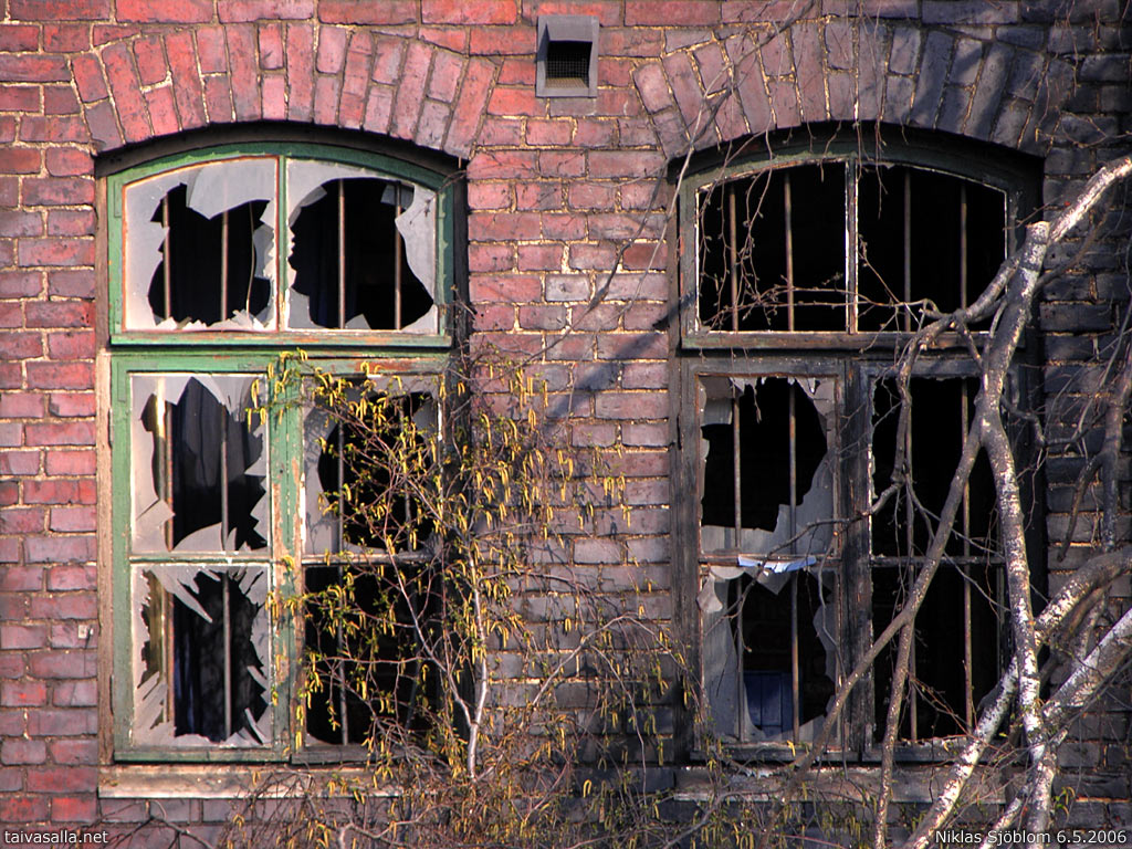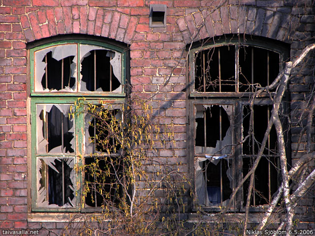 Helsinki: Windows of a former railway warehouse destroyed in a huge fire the night before.