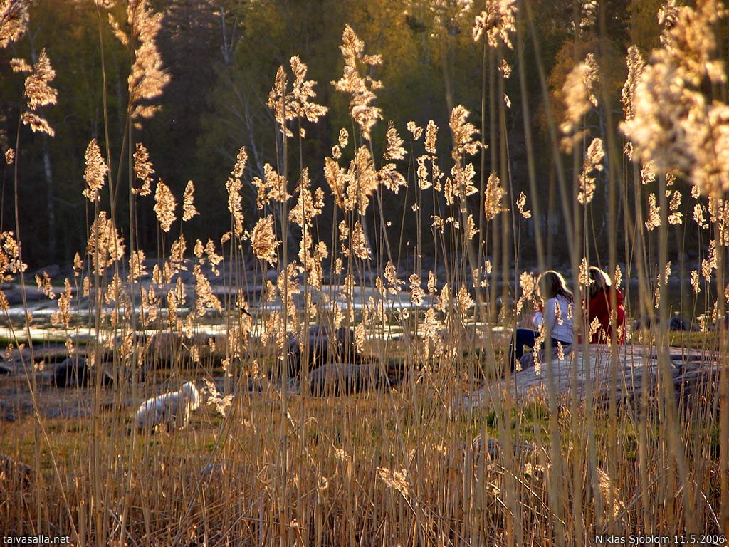 Helsinki: Two girls and their dog enjoying a sunny evening on the shore of Itälahti bay in the southern part of Lauttasaari district.