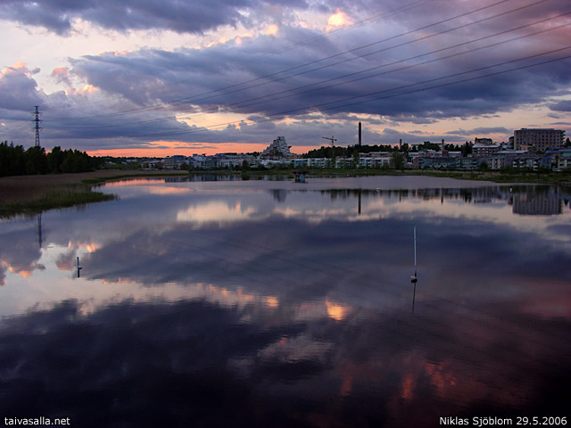 Ihan kuin pilvet olisivat laskeutuneet langoille. Yleensäkin pidän tosi paljon näistä peiliefekteistä, jotka näkyvät minulle hyvin symbolisina: kuvatkin heijastuvat kommenteissa, jotka puolestaan toisissa kommenteissa... mutta pintoja on monenlaisia... Tässä kuvassa peilikuva valtaa kohteensa, ja lisäksi tämä kuva on taas yksi löytöihin houkuttelevista: näkyy siivekkäitä otuksia, luurankoja... kaunista kauhua! (no, voisin taas kirjoittaa kirjan tästä... sori Hannu, koeta kestää :D)