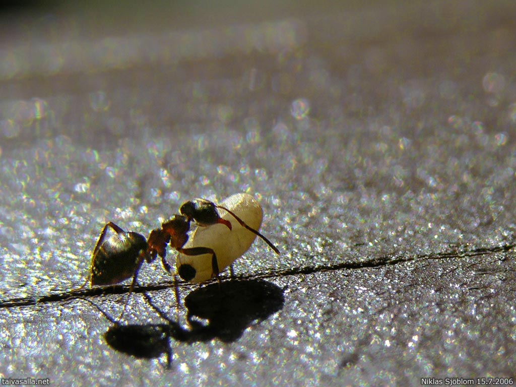 Kotka: A worker ant carrying a future offspring to a safer place.