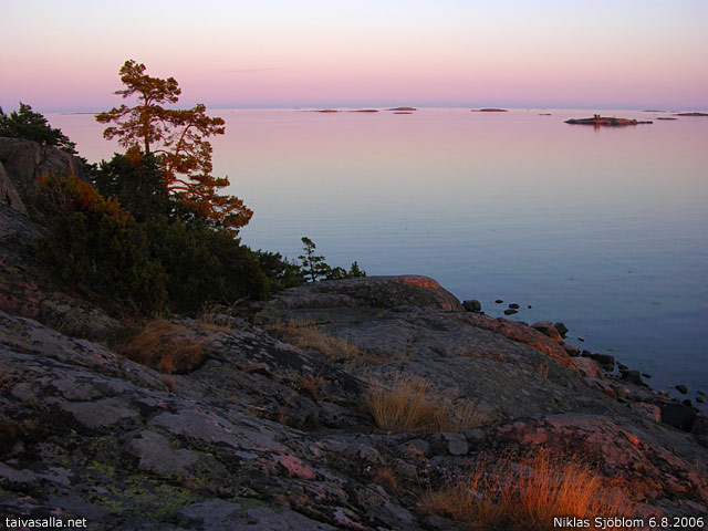 Hanko: Illan viimeiset auringonsäteet hipovat Högholmenin rantakallioita Tvärminnessä, kymmenisen kilometriä Hangon keskustasta itään sijaitsevan luontopolun varrella.