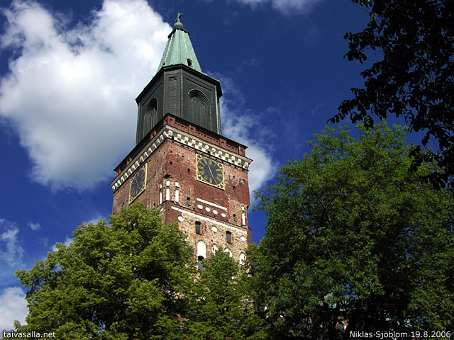 Turku: Tuomiokirkon torni ja aamulla klo 5.15 pysähtynyt kello, joka saatiin käymään pari päivää myöhemmin. Helsingin Sanomien uutisen mukaan kello ei ollut pysähtynyt ainakaan 30 vuoteen.