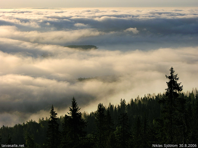 Olen usein ajatellut joidenkin kuvien kohdalla samoin kuin nyt Rauno tämän. Kommentoimaton kuva ei todellakaan aina ole "huonoin", mutta se voi olla vaikein - sanoiksi pukea. Itse olen katsellut tämän kuvan kuusten silhuettia, ja toivonut olevani einoleino. Usva vaeltaa latvustossa... (ei löydy sanoja, poltan vaan kuvaa pääni ceedeehen, varastoksi uniin)