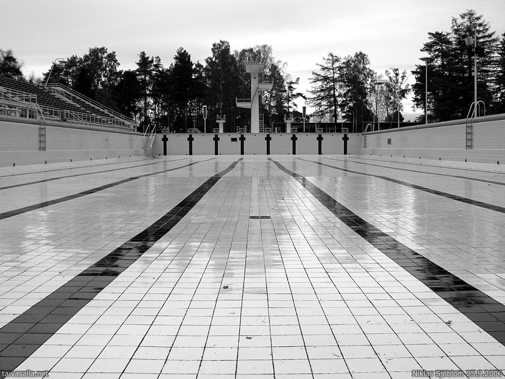 Helsinki: An empty swimming pool at the Swimming Stadium, the city's most popular open-air swimming pool. The swimming season ended two weeks earlier, and the pool was emptied.