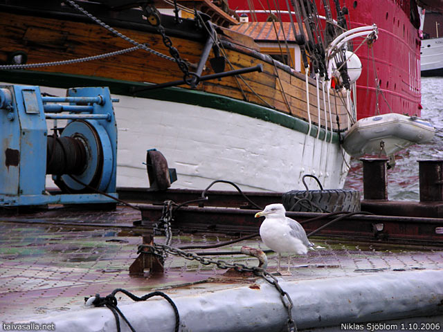 Ja tuo minkä päällä lokki istuu, on kai jokin proomu tai vastaava? Lisää kuvia Kauppatorilta ja silakkamarkkinoilta tulossa..?