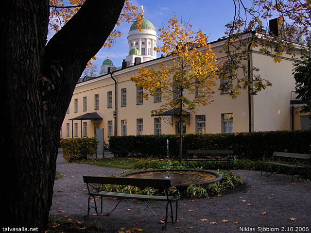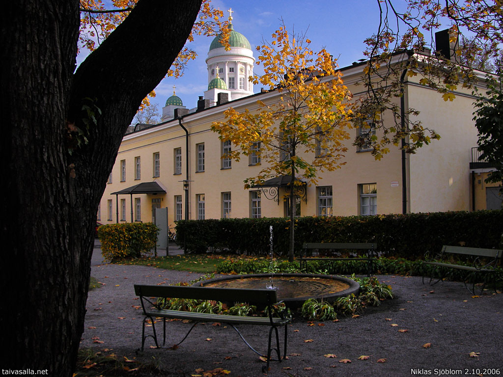 Vihdoinkin uusi ihana Helsinki-kuva! Siinä on kaikki: syksyinen tunnelma, kaunis vanha rakennus ja tunnistettava maamerkki taka-alalla. Nämä kuvasi avaavat silmämme havaitsemaan niitä kaupunkimme yksityiskohtia, jotka tavallisesti jäävät meiltä huomaamatta.