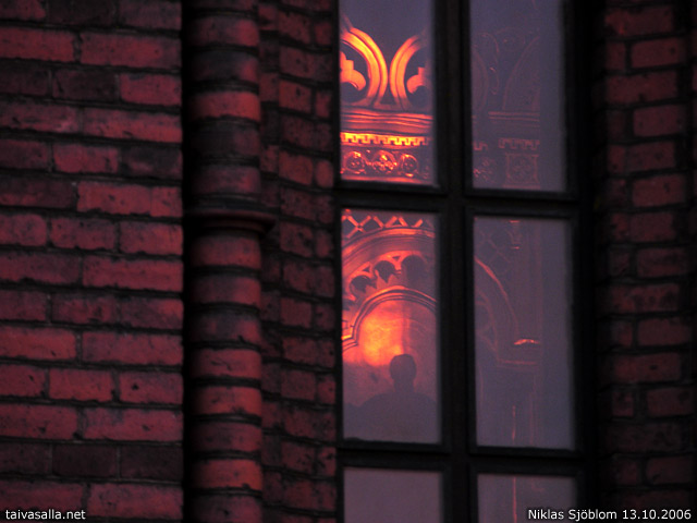 Ihanat värit ja lämpö, tunnelmallinen kurkistus. Voisi luulla, että valaistus tulee kynttilöistä sisällä. Ja voisi myös luulla, että ikonostaasin edessä seisoo hahmo.