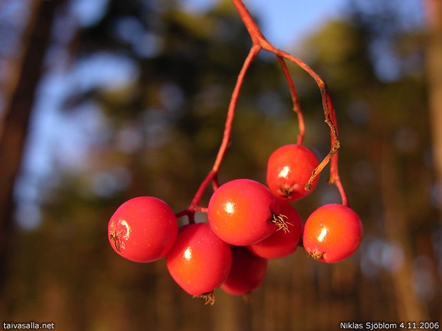 Helsinki: Pihlajanmarjaterttu Kallahdenharjulla kasvavassa puussa Vuosaaressa.