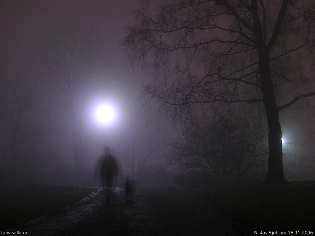 Taiteellinen. Kuvaa vaihteeksi (liiankin!) totuudenmukaisesti marraskuun synkkyyttä. Noinkin yksinkertainen tilanne ja pieni tekninen temppu johtavat syksyn pimeydessä pelottavaan tunnelmaan.