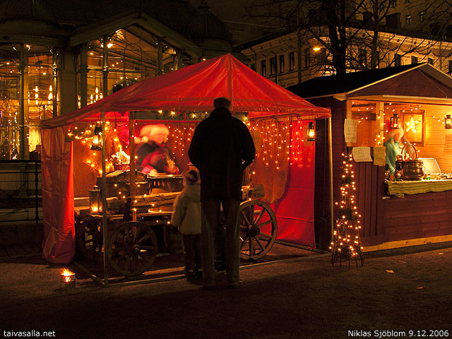 Lämmin ja jouluinen tunnelma. Emme ehdi markkinoille, kun tulemme Suomeen vasta 22/12, mutta nautin kuvan kautta.