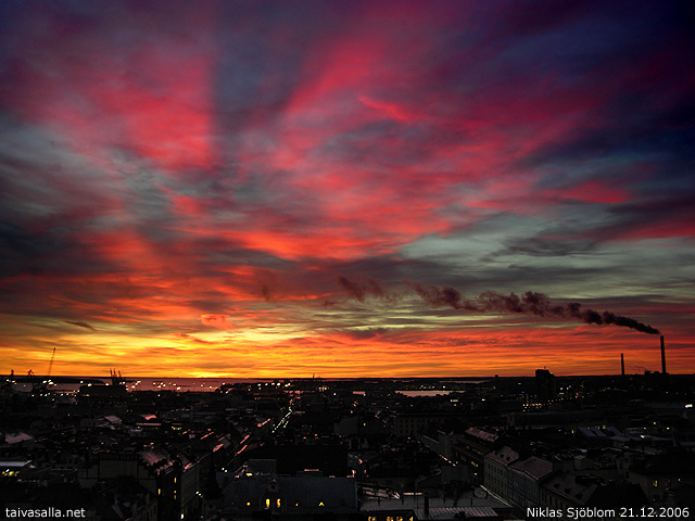 Kuvasin itse ruskoa Kauppakeskus Kaisan parkkitalon katolta. Tarinaa ja kuvalinkkejä löytyy blogistani.
