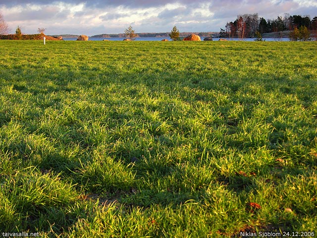 Kauniin vihreä on nurmi, ei todella voisi uskoa että allakan mukaan on talvi.