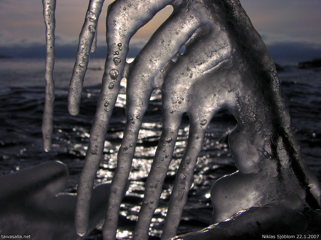 Vesipisarat ja kaunis vastavalo tekevät tästä mielestäni (toistaiseksi) parhaan jääpuikkokuvan. Edellinen oli myös hieno, mutta luettuani kommentit se alkoi näyttää vastenmieliseltä :)