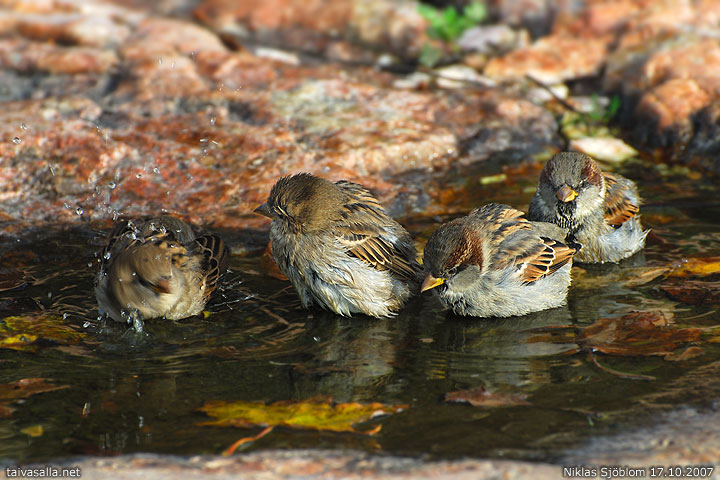 Helsinki: Varpuset jonottavat pesulle Ursinin kalliolla Eirassa.