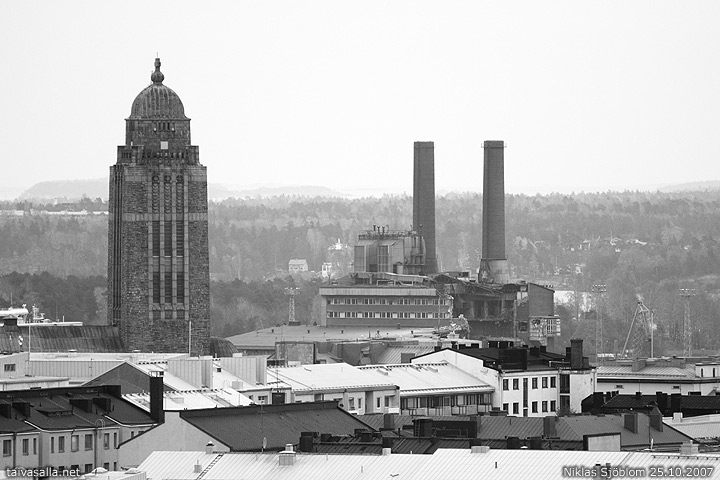Hämmentävää, kun etäisyydet häviävät. Niklas, onko tuo Kallion kirkon tornin vasemmalla puolella taustalla häämöttävä "mäki" Vuosaaren Himalaja? Mikä muukaan se voisi olla...? Vai onko kompassini ihan pielessä? Jukka1, olen samaa mieltä - oivaltavaa symboliikka, oli sitten tahatonta tai ei.