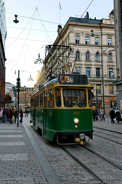 Helsinki: Aleksanterinkadulla kuvattu vaunu 12 vuodelta 1959 juhlisti kolmosen raitiolinjan 85-vuotissynttäreitä.