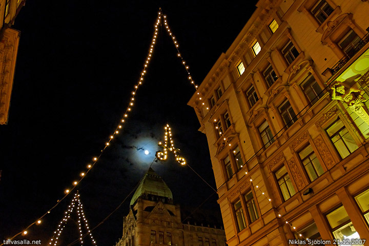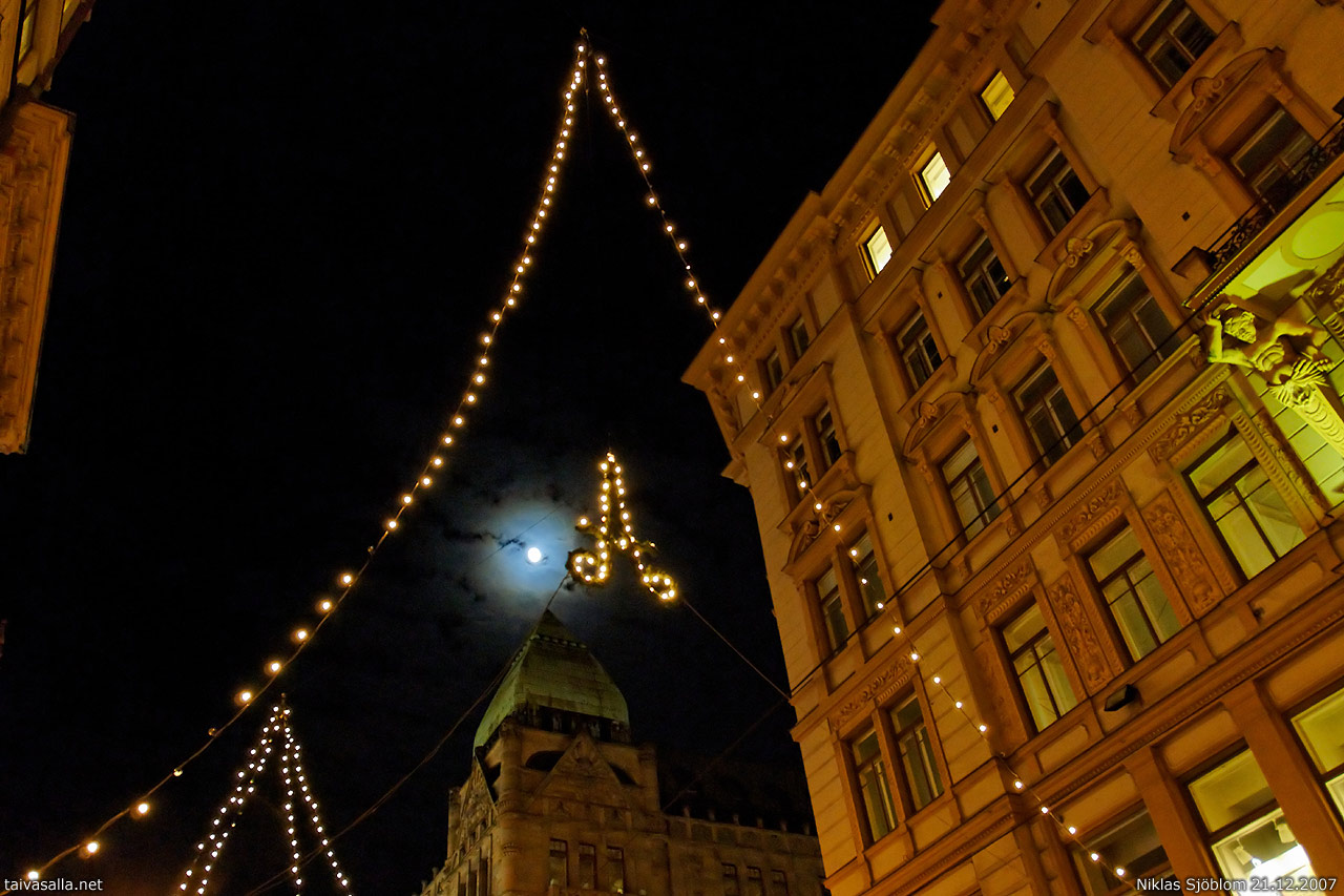 Siinä joulunaikaan on kivaa kun mun nimikirjain on tolleen valaistu. Tä, ei siis olekaan mun? Kiva kirjain se silti on vaikka kai tarkoittaakin sitä muinaista hallitsija Aleksanteria ja hänen katuaan.