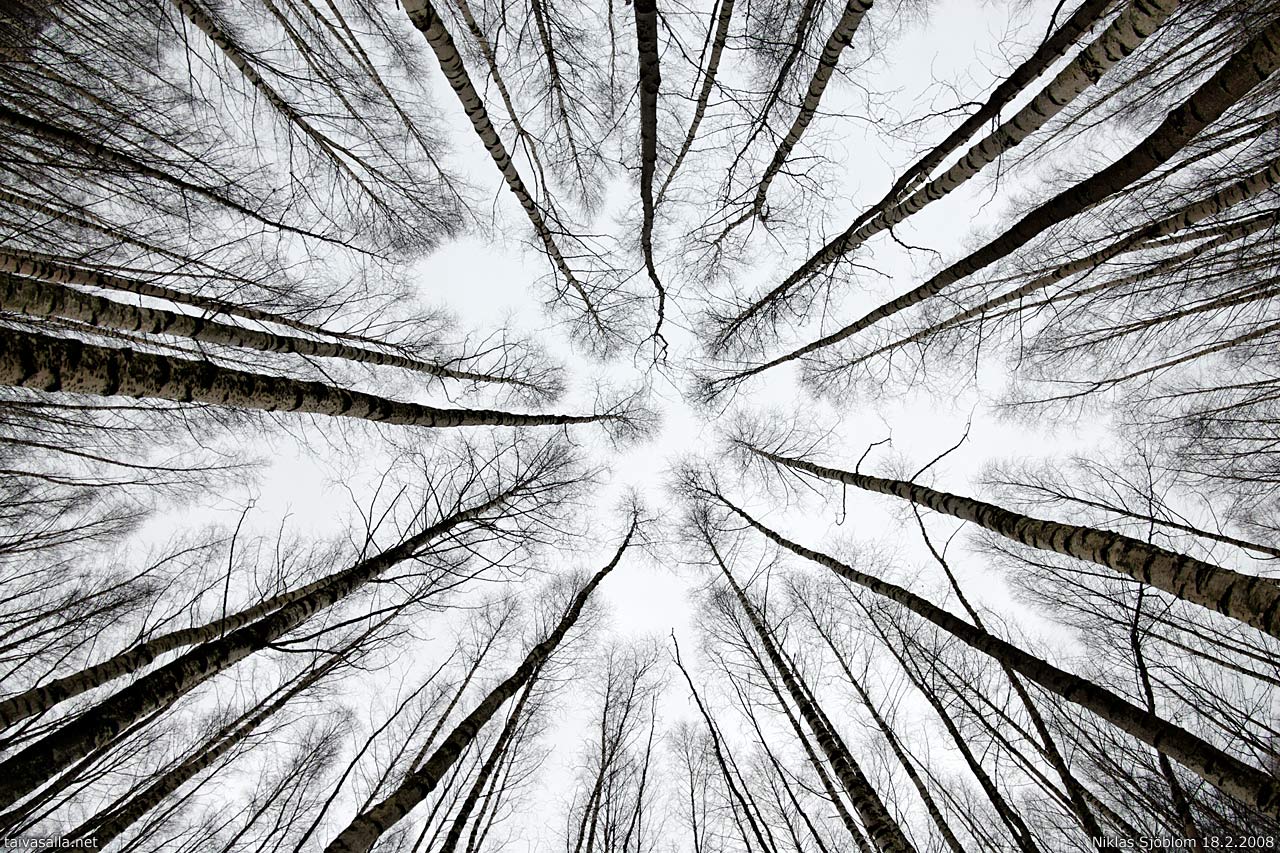 Antaapa koivujen korkeuksiin kurkotella.. Itse rennosti köllötellen - kattona armollisen avara taivas :)! Hieno kuvakulma.