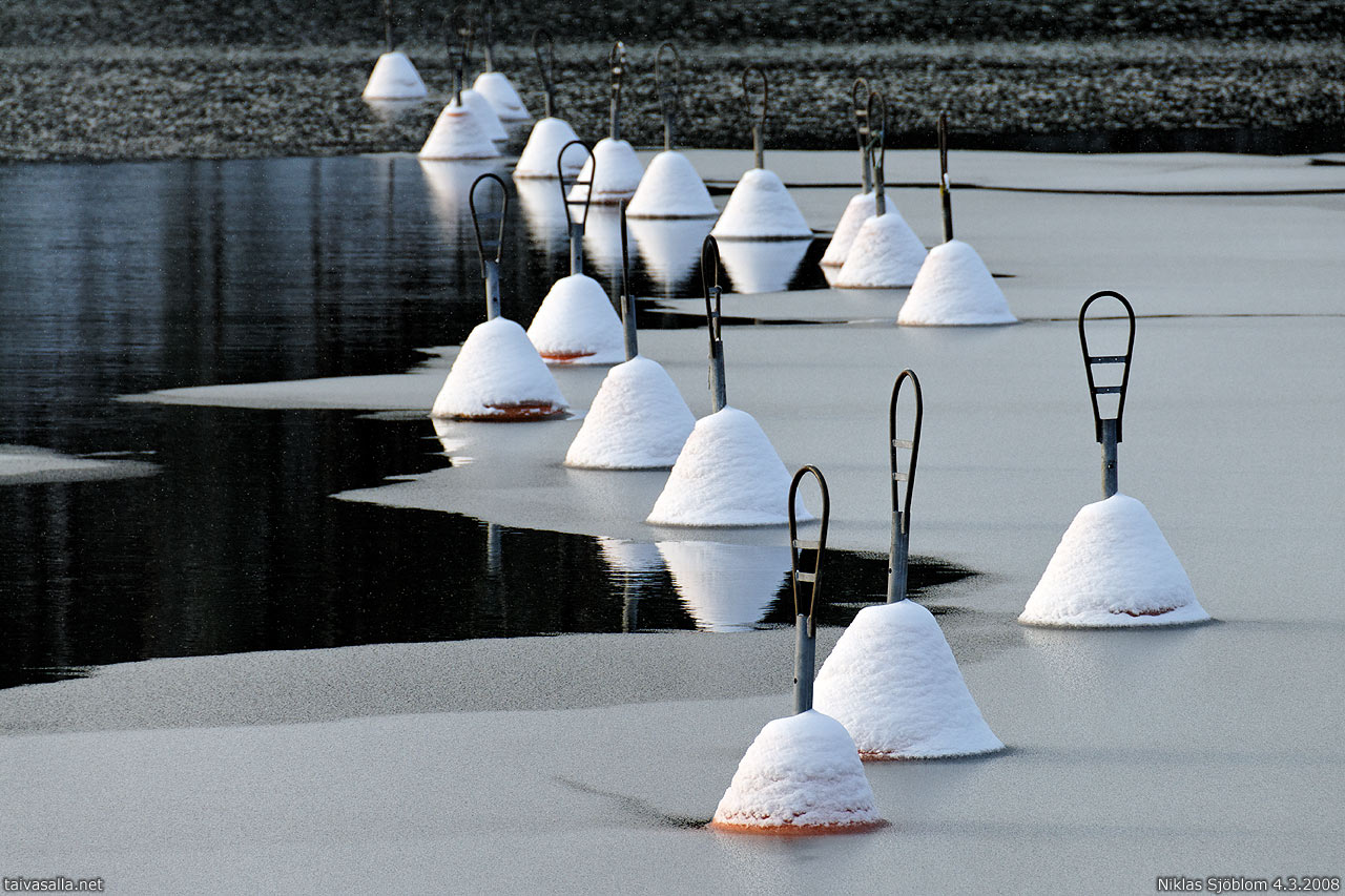 Helsinki: Poijuja Pikku Kallahden pienvenesatamassa Vuosaaressa.
