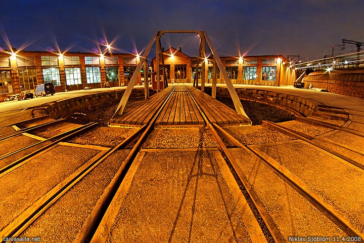 Helsinki: Pasilan ratapihan vanhat veturitallit ja vetureiden kääntämiseen käytettävä kääntöpöytä.