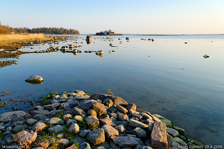 Tässä keväisessä kuvassa näyttää vesi olevan niin matalaa että voisi vaikka kahlata taustalla näkyvään saareen.