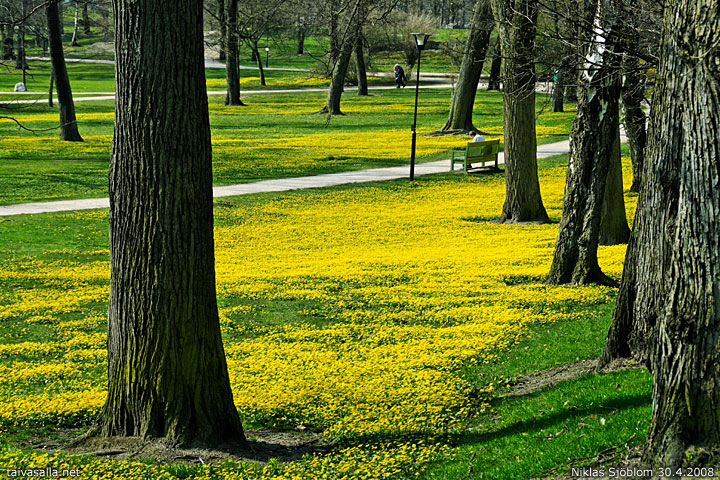 Helsinki: Kevään keltainen kukkamatto koristeli Kaivopuiston vapun viettoon.