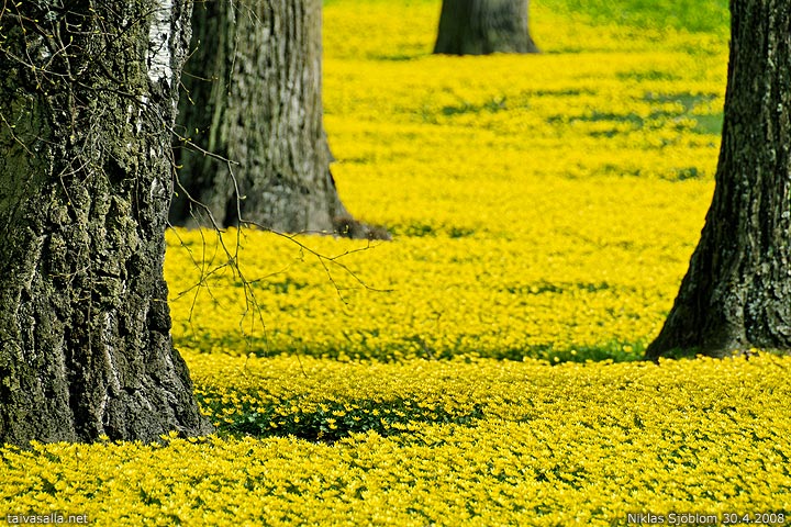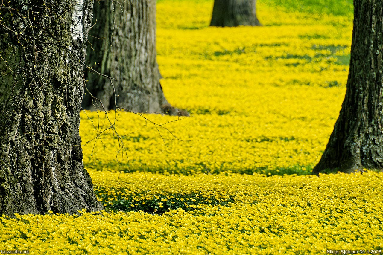 Helsinki: Kevään keltaista kukkamattoa Kaivopuistossa.