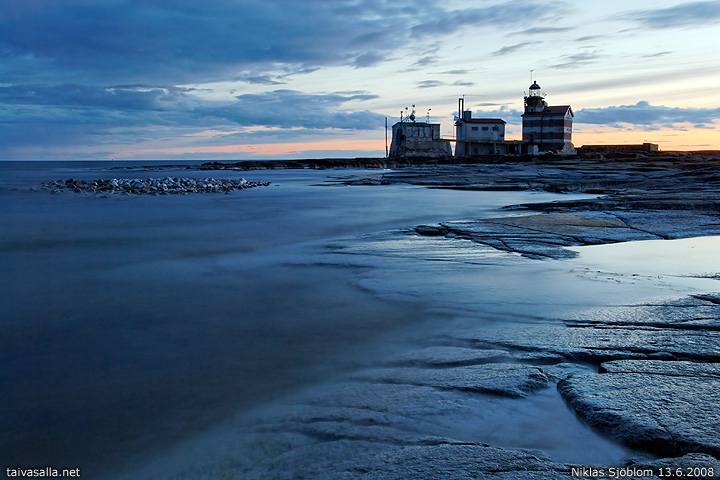 Märket, Ahvenanmaa/Ruotsi: Suomen ja Ruotsin rajalla Ahvenanmerellä sijaitseva Märketin majakkaluoto kesäyön hämärissä.