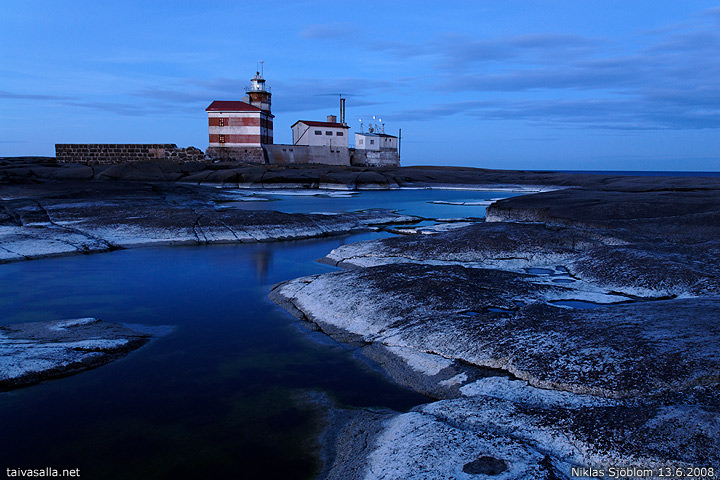 Märket, Ahvenanmaa/Ruotsi: Suomen ja Ruotsin rajalla Ahvenanmerellä sijaitseva Märketin majakkaluoto kesäyön hämärissä.