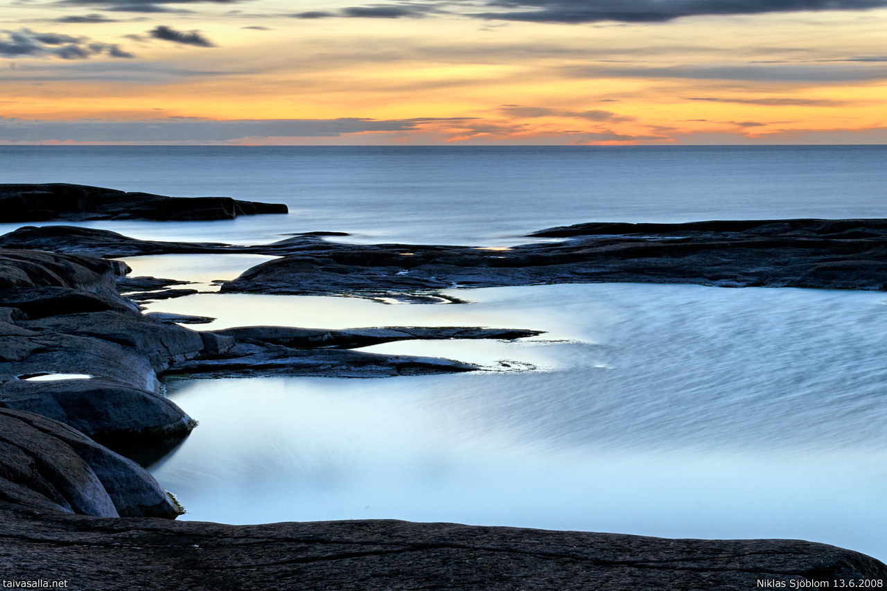 Märket, Ahvenanmaa/Ruotsi: Näkymä Selkämeren aavalle Suomen ja Ruotsin rajalla Ahvenanmerellä sijaitsevalta Märketin majakkaluodolta kesäyön hämärissä.