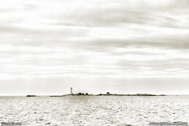 Sipoo/Porvoo: Söderskärin majakkasaari Porvoon ulkosaaristossa kuvattuna Sipoonselältä. Kartalle merkitty kuvauspaikka suuntineen on viitteellinen.