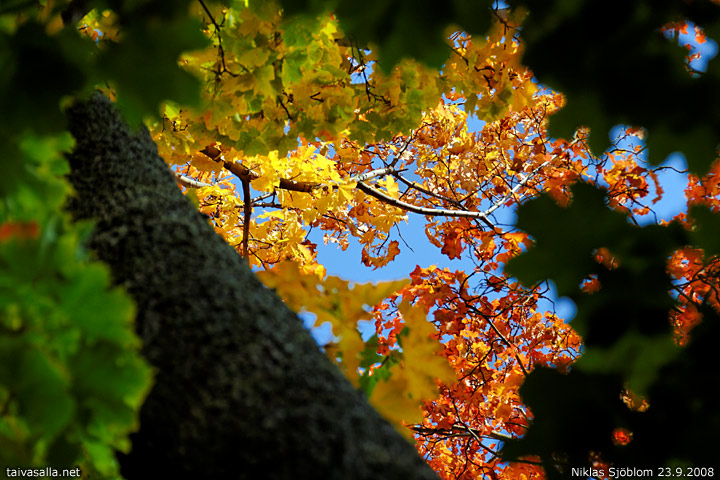 Helsinki: Autumn colours in a maple in Kaivopuisto park.