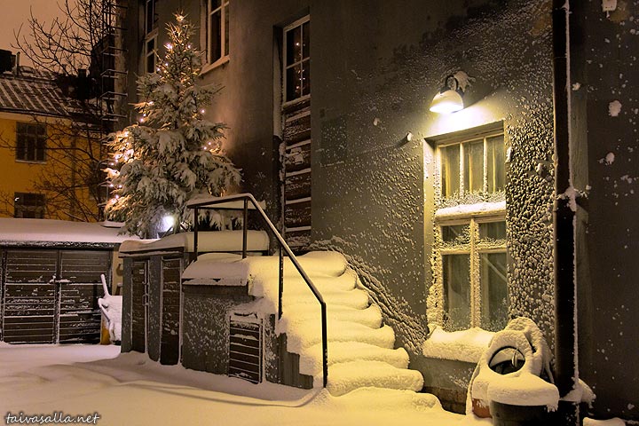 Helsinki: Kaupunki lumimyräkän jälkeen, osa 1. Sisäpihanäkymä Luotsikadulta Katajanokalta. Rakennus oli myös marraskuun 2008 kalenterikuvassa (6.11.2006).