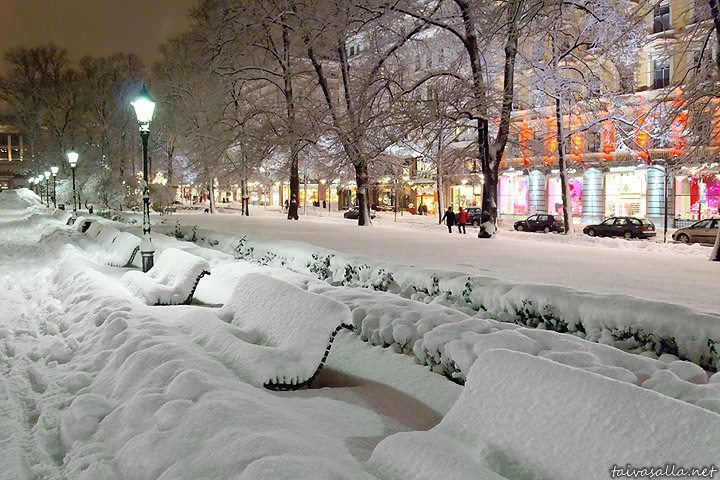 Helsinki: Kaupunki lumimyräkän jälkeen, osa 10. Talvinen näkymä Esplanadin puistosta.