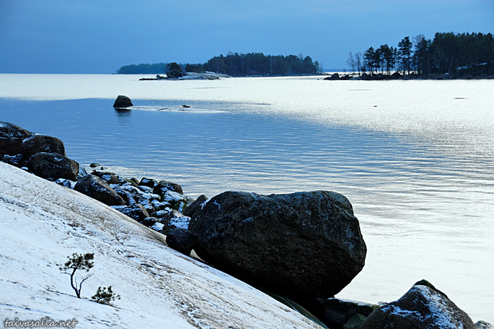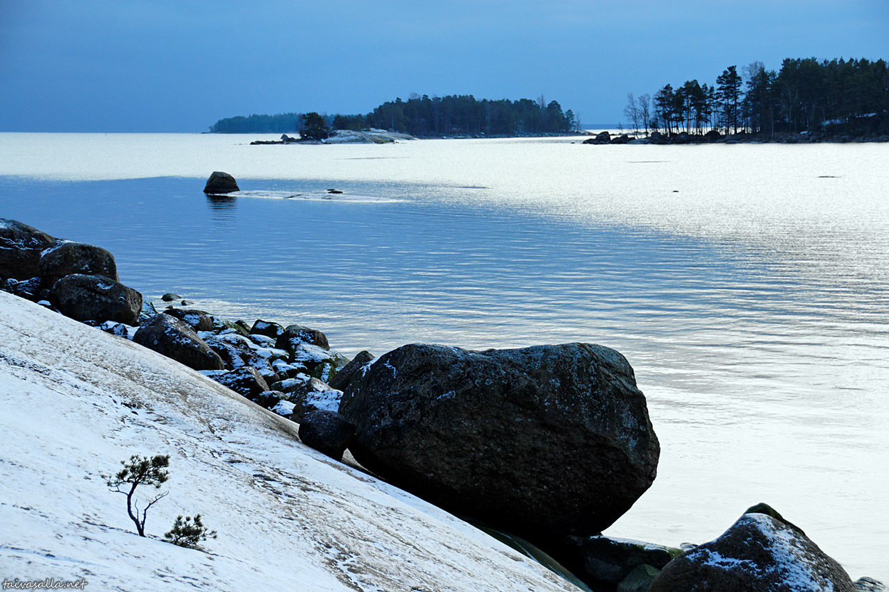 Kotka: View from the seashore near Santalahti nature trail on Christmas Day. Photo taken in the district of Mussalo in Kotka, a city in southeastern Finland.