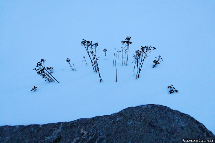 Helsinki: Straws in the snow on the cliffs of Eteläinen Uunisaari island near Kaivopuisto district.