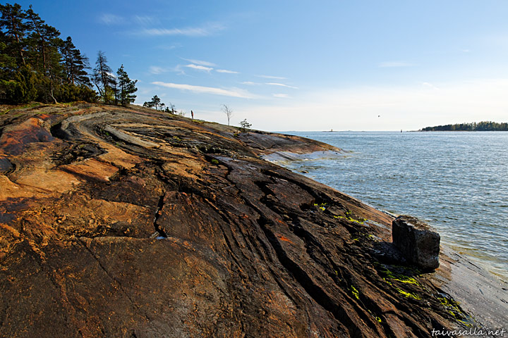 Helsinki: Uurteista rantakalliota Läntisessä Pihlajasaaressa.