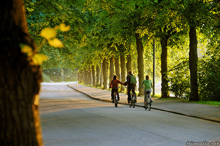 Tää on periaatteessa ihan tavallinen kuva tavallisesta kadunpätkästä, MUTTA tuo valo, varjot, syvyys, asetelma, värit, jopa pyöräilijöiden vaatteiden värit tekee tästä KUVAN!!