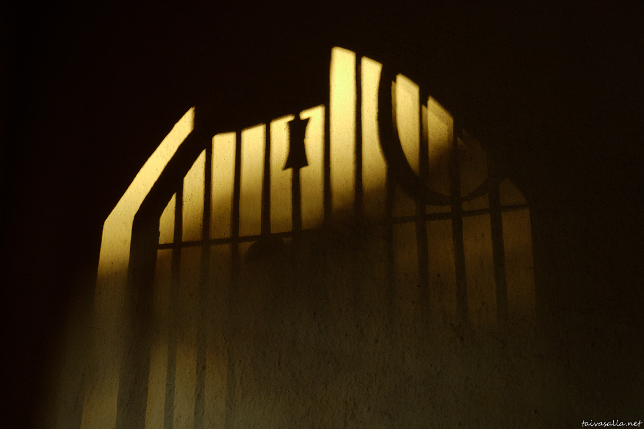 Sinulla Niklas on ilmiömäinen taito valita erikoisia kuvauskohteita. Tämäkin kuva valoineen ja varjoineen on kuin, sanoisinko sadunomainen. Portti näyttää olevan raollaan ja onko jonkun ihmisenkin varjo tuosa kuvan keskellä.(?)