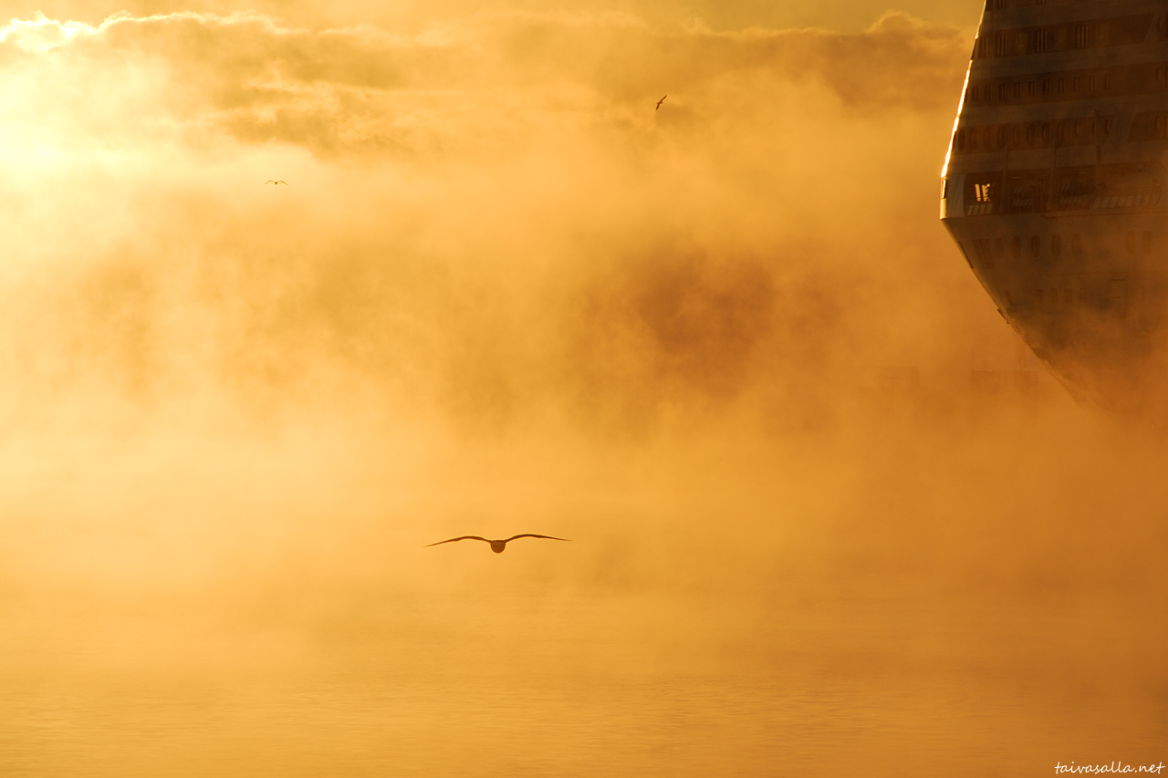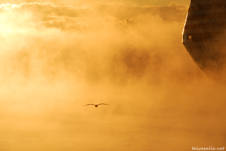 Helsinki: Merisavua Eteläsatamassa kuvattuna Suomenlinnan lautalta kylmänä talviaamuna.