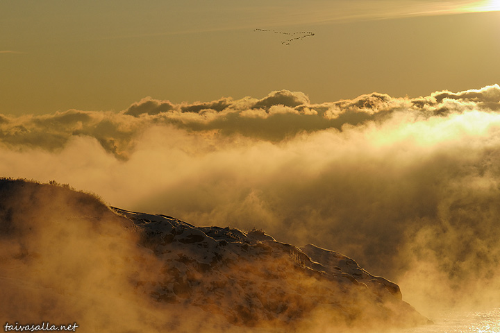 Tästä tulee mieleen ne Himalajan huiput ylittävät kurjet, jotka talveksi lentävät Intiaan Siperian aroilta!