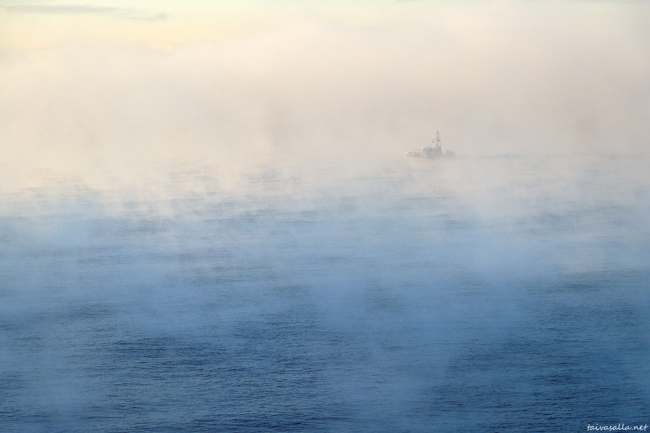 Tarkkaan kun jää katsomaan luotsivenettä, se lähtee hiljalleen liikkeelle! Ja vesi velloo etualalla eikä merisavukaan pysy paikallaan. "Amazing" osuisi kai kuvauksena kohdalleen. Hieno, elävä kuva.