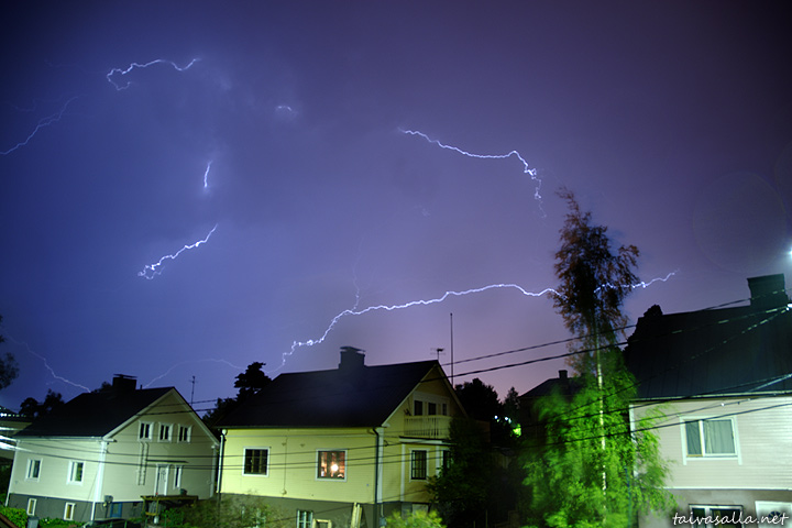 Kotka: Lightnings strike above the district of Katariina during a nightly thunderstorm. Photo taken in Kotka, a city on the southeastern coast of Finland.