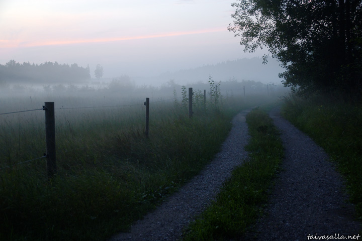 Hanko: A misty field in the village of Täktom, about 10 kilometres east of the city of Hanko in the southernmost part of Finland. Photo taken on a very warm and humid summer evening.