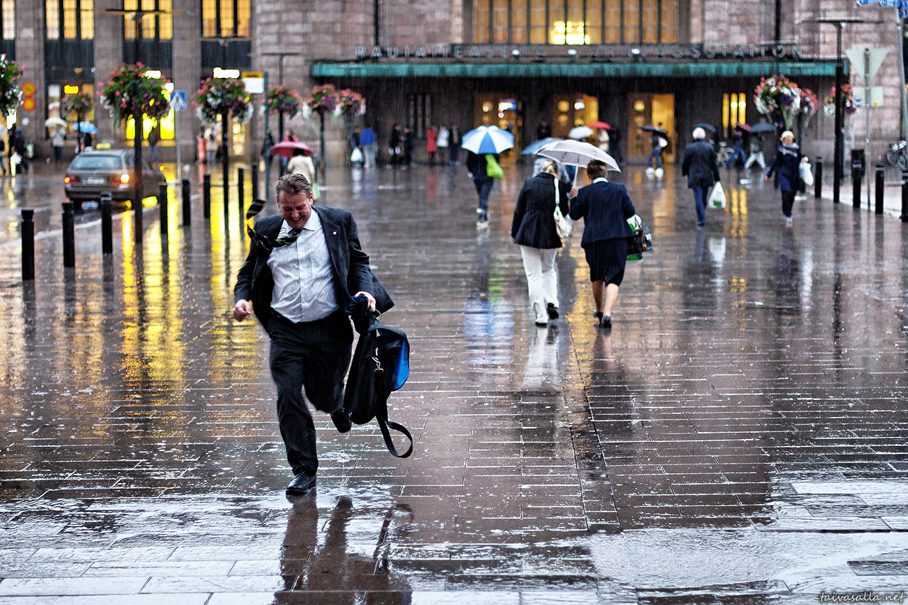 Helsinki: A rainy evening in the city centre nearby the Central Railway Station.