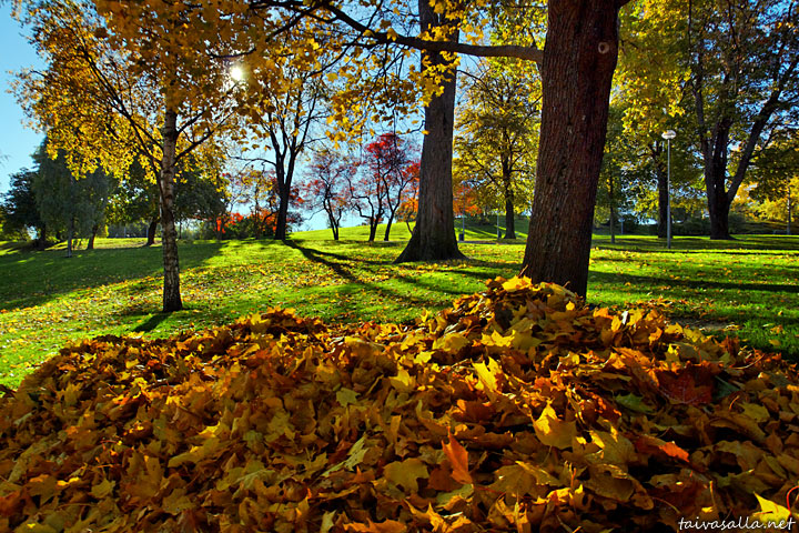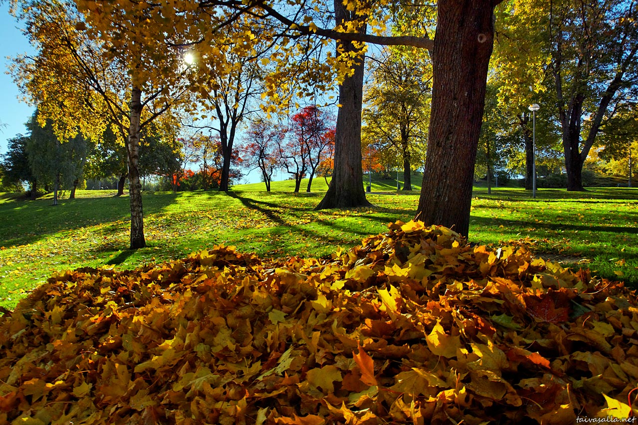 Helsinki: A sunny autumn day on Tähtitornin vuori hill in the district of Ullanlinna.