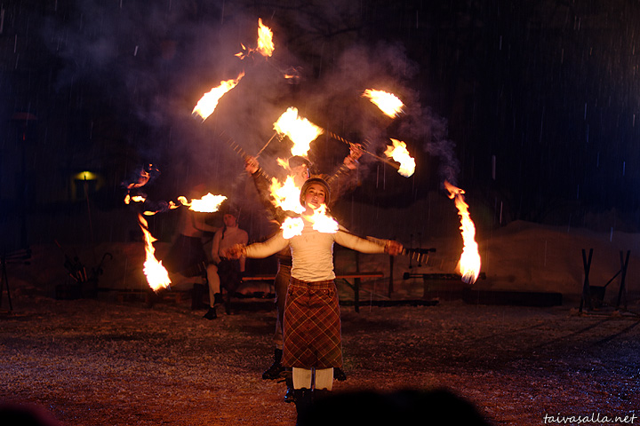 Helsinki: Fire circus Walkea performing in the courtyard of the Topelia building on Unioninkatu street during the 2011 Season of Light event.