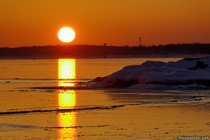 Helsinki: Sunset above the island of Melkki seen from a small bay between Susisaari and Kustaanmiekka, two of the Suomenlinna fortress islands.