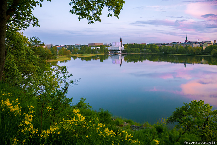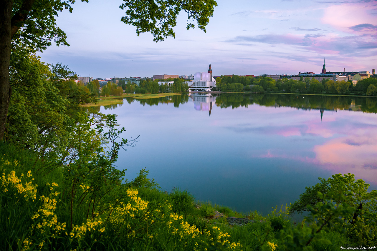 Helsinki: A calm spring evening's view towards the districts of Etu-Töölö and Taka-Töölö from the eastern shore of Töölönlahti inlet. On the opposite shore are the Finlandia Hall and the Hesperia Park. (Compare this with an autumn landscape: 19 October 2009.)