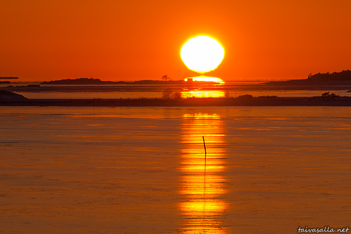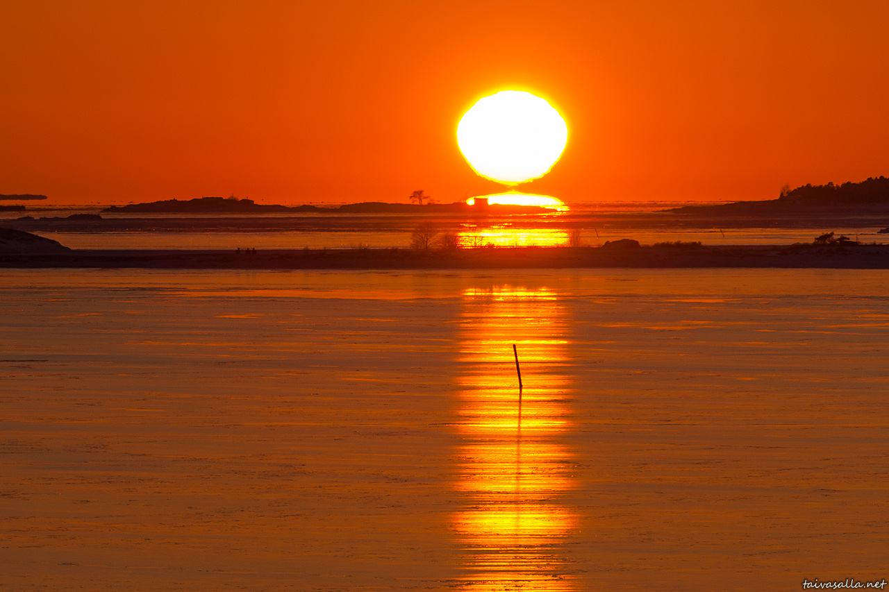 Helsinki: Sunset above the Gulf of Finland in a wintry view from Kustaanmiekka, one of the Suomenlinna fortress islands.